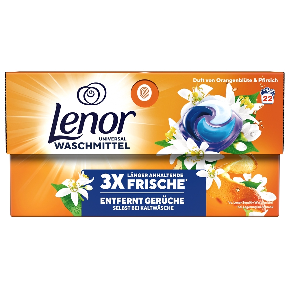 Lenor kapsułki do prania o intensywnym zapachu kwiatu pomarańczy. Posiadają nową Formułę 4 in1. Produkt przeznaczony do prania tkanin jasnych i białych. Już jedna kapsułka sprawi, że Twoje pranie będzie czyste, pachnące i cudownie miękkie. Kapsułki zawierają formułę, która chroni kolory pranych ubrań, aby na długo pozostały jak nowe.